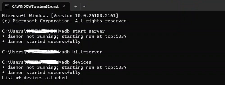 start-server: This argument tells adb to initialize the server process, If the server is not running already, this command will start it, allowing future adb commands to communicate with devices.